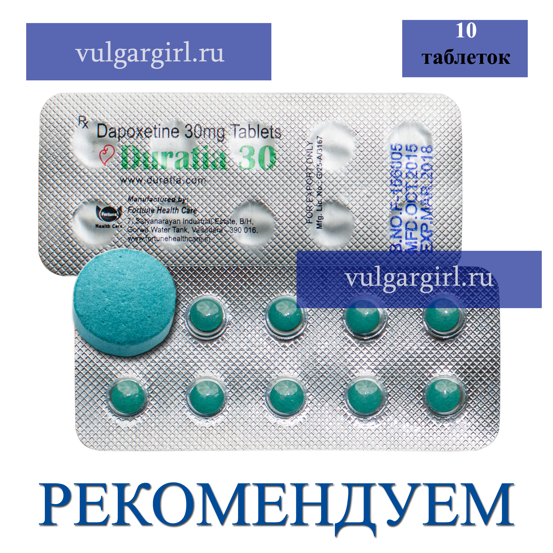 Дапоксетин выпускается в форме двояковыпуклых таблеток, которые имеют голубой цвет. Дозировка одной таблетки составляет 30 мг.